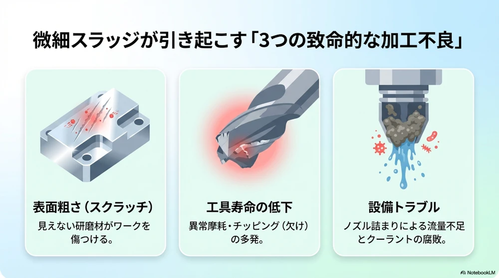 3.微細スラッジが引き起こす「3つの致命的加工不良」